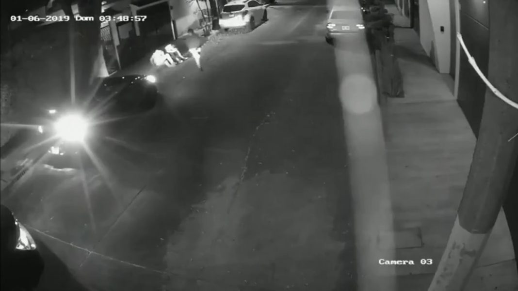 En la grabación se observa a los dos criminales despojar de sus pertenencias y de su automóvil a las dos víctimas.