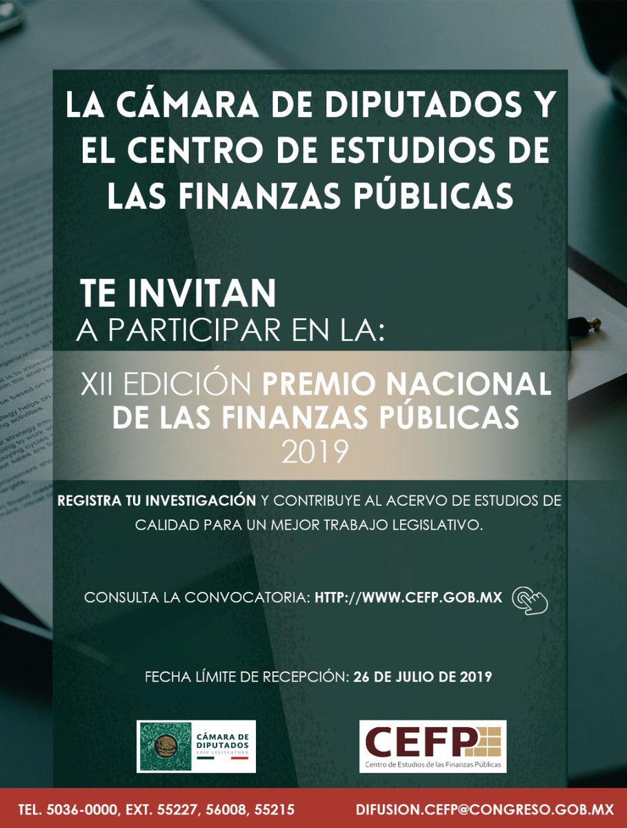 Para promover y estimular la investigación en finanzas públicas y economía, el @CEFP_diputados convoca a la XII edición del Premio Nacional de las Finanzas Públicas 2019