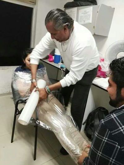 En el material se observa como una mujer que se encuentra sentada en una silla es enredada con plástico transparente por un compañero del sexo masculino con el mensaje “esto me paso por molestar a mis 16´s”, mientras sonríen se toman fotografías en el espacio de trabajo.