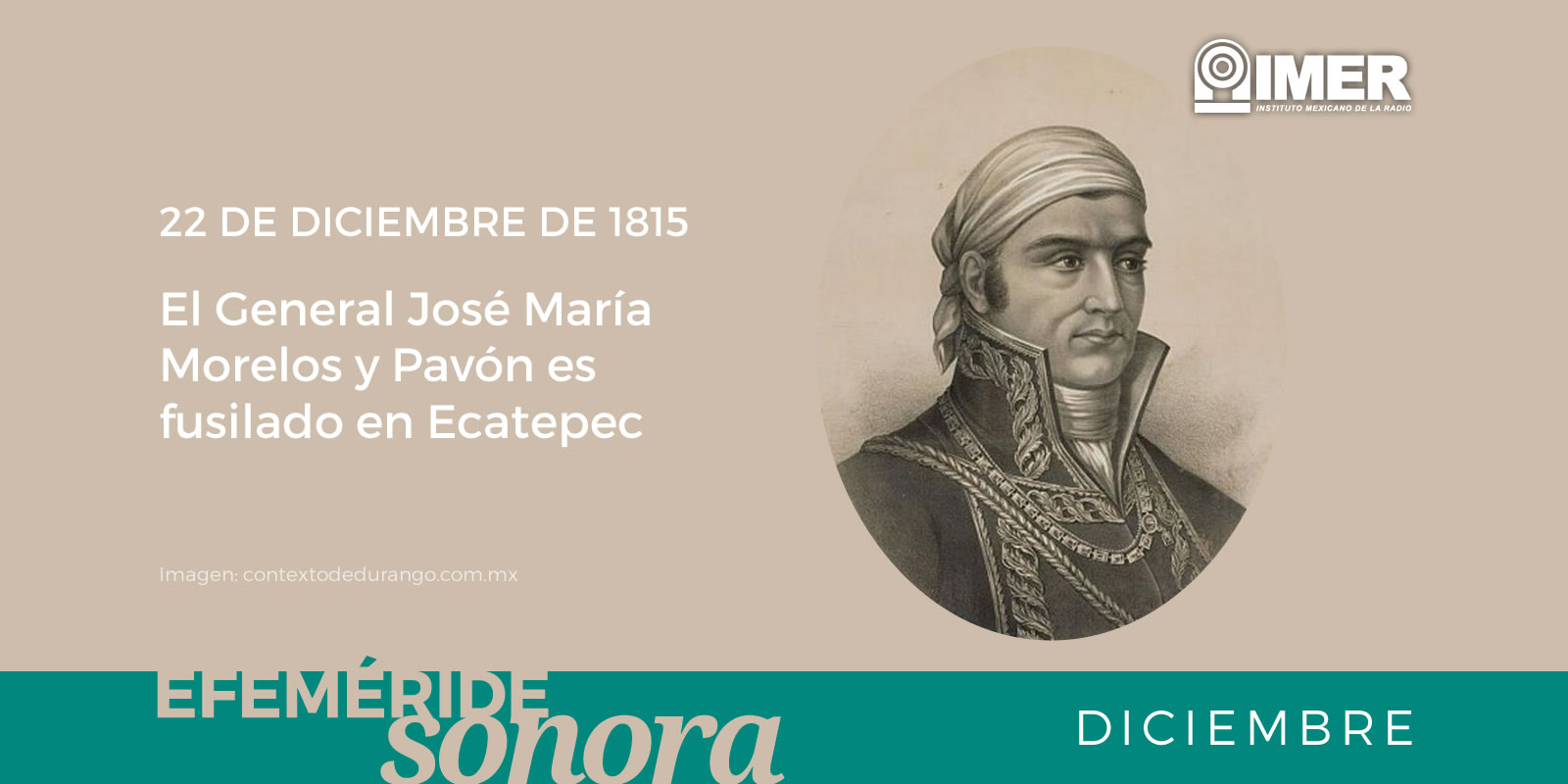1815 El General José María Morelos y Pavón es fusilado en Ecatepec. Escucha el programa narrado y dramatizado “Memorias de una Nación”, transmitido el 22 de diciembre de 1984, en el que se presenta un pasaje de la vida de Morelos