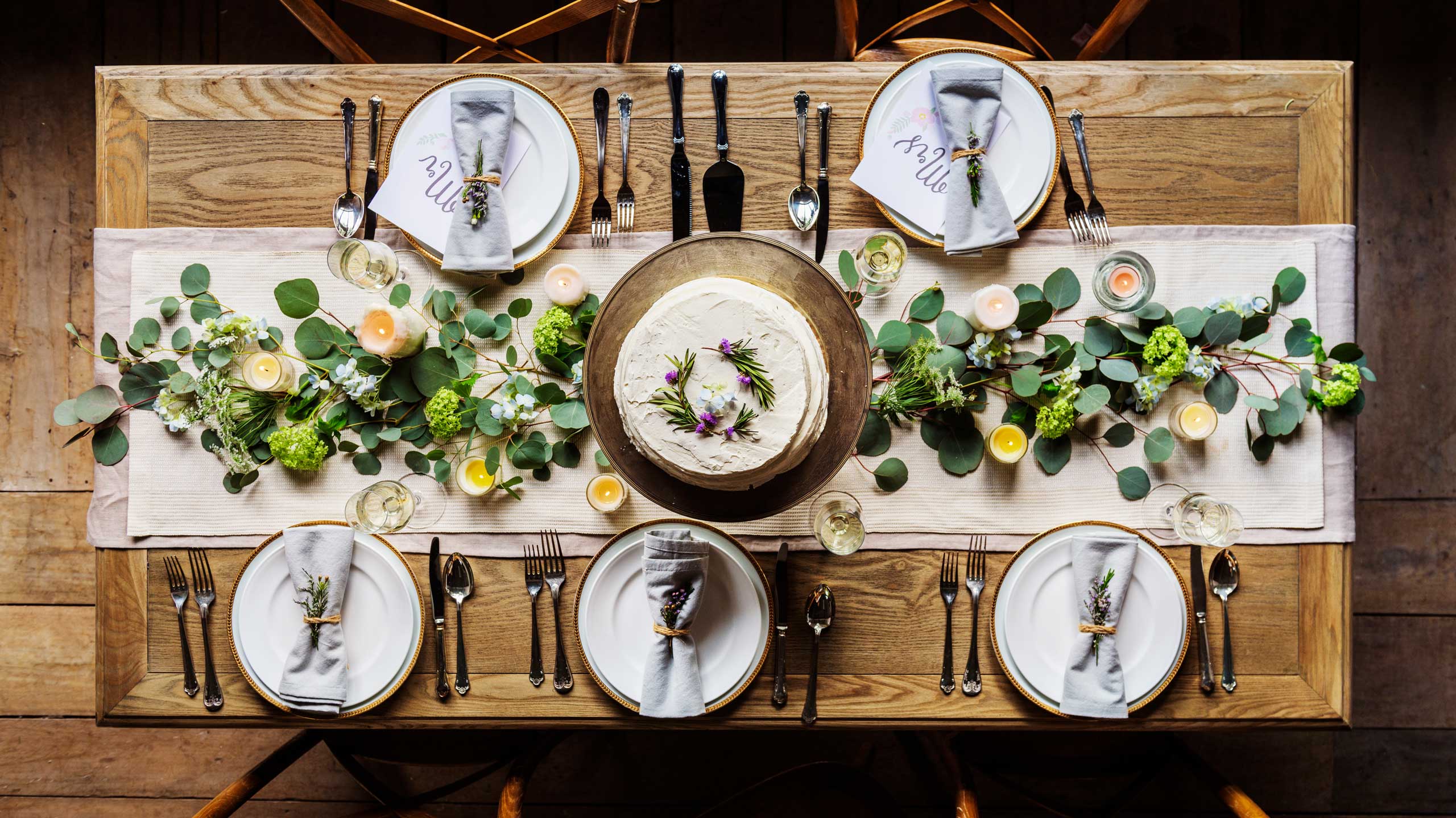 1. Escoge un color neutro para el mantel como el beige, pero si eres un poco más audaz, utiliza la mesa sin mantel, también se ve espectacular. Puedes colocar solamente un camino de mesa de color rojo o verde olivo para que todo lo demás resalte.