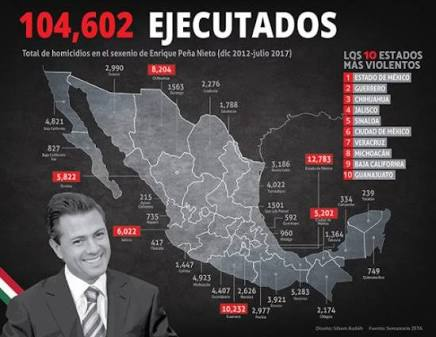 Con casi 100 mil ejecuciones terminará los últimos meses del sexenio más violento de la historia de México, miles de desaparecidos, por quien quiso detener la violencia simplemente pidiendo a los medios que dejarán de publicar notas rojas que, por cierto, son las que desde siempre han sido las que venden al público al ser el morbo uno de los mejores negocios.