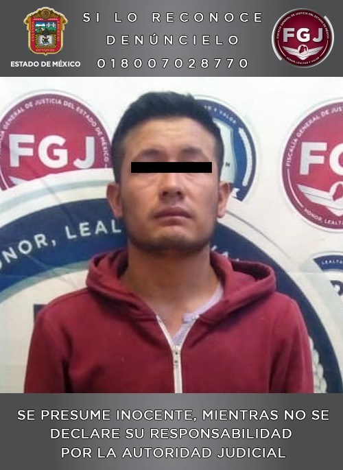 Este sujeto fue detenido en cumplimiento a una orden de aprehensión y enfrenta cargos por la violación de una menor de 13 años de edad, a quien al parecer agredió sexualmente en el interior de un domicilio de la comunidad de Chalchihuapan, del municipio de Tenancingo.