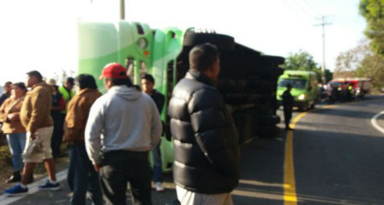 Un camión volcó sobre la carretera Santiago Tianguistenco-Chalma, a la altura del paraje el Tambor, lo que ocasionó 20 pasajeros heridos.
