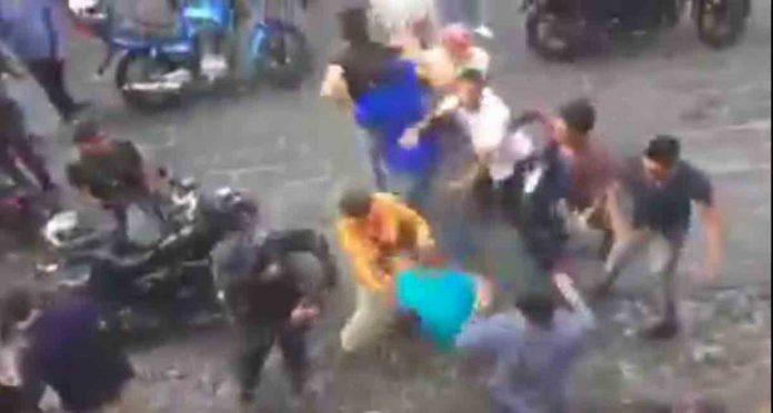 Tras el incidente, un grupo de personas comenzó a golpear al motociclista, quien es auxiliado por sus compañeros para intentar calmar la situación.