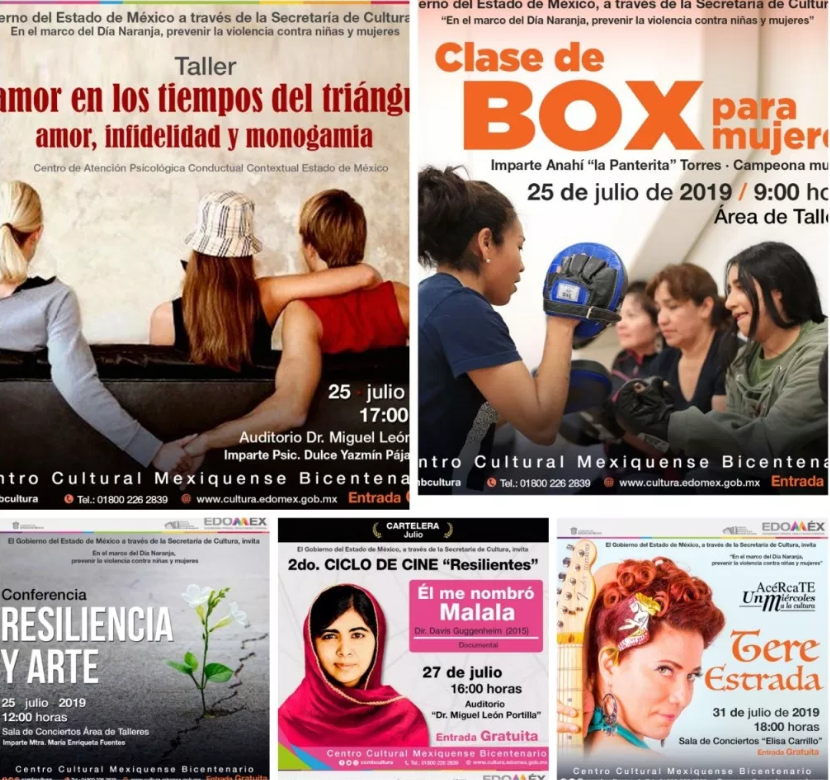 El 25 de noviembre es el Día Internacional para la Erradicación de la Violencia contra las Mujeres y las Niñas; sin embargo, la campaña ¡Únete! invita a que el 25 de cada mes se reafirme el compromiso en contra de la violencia de género. En el marco de esta conmemoración, el próximo 25 de julio, en el Centro Cultural Mexiquense Bicentenario (CCMB), se realizará una jornada de actividades, la cual incluye talleres, conferencias, una clase de box, música y cine.