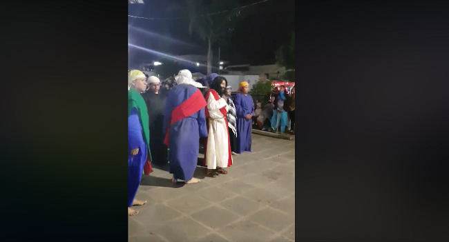 TLAXCALA.- En redes sociales fue difundido un video donde aparece un actor personificando a Jesucristo en completo estado de ebriedad.
