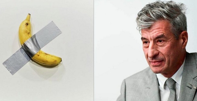 El artista italiano Maurizio Cattelan expusó una insólita pieza en la galería Perrotin de Miami, Florida, EU, que consiste en una banana adherida a la pared con cinta aislante.
