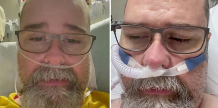 El mensaje fue grabado desde la cama de un hospital de Nueva York, donde se encuentra internado. En él Stacey llora y reconoce que estaba equivocado desde el comienzo de la pandemia.