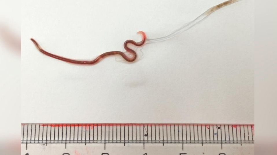 Dentro de la amígdala izquierda de la mujer, los médicos lograron encontrar un desagradable gusano parasitario negro, que medía alrededor de 4 centímetros de largo y que aún se movía tras ser extraído con unas pinzas del cuerpo de la joven.