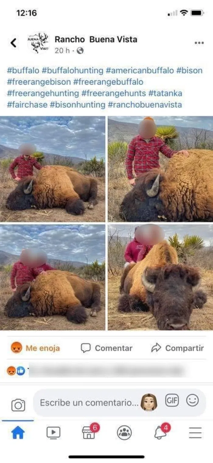 A través de sus redes sociales, el Rancho Buena Vista, ubicado en la región Centro de Coahuila, generó la inconformidad y la indignación de los usuarios, luego de publicar una serie de fotografías de caza de un Bisonte Americano, cuya llegada al estado había sido celebrada en días anteriores tras 100 años de ausencia.