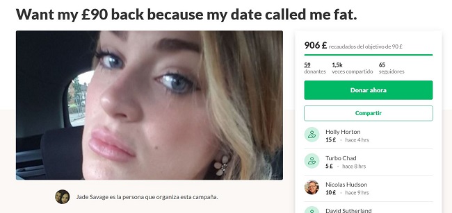 La respuesta de los internautas a esta petición ha sido muy favorable, ya que en solo seis días ha logrado recaudar 876 libras (21 mil pesos). Jade asegura que el dinero lo invertirá en una buena causa.