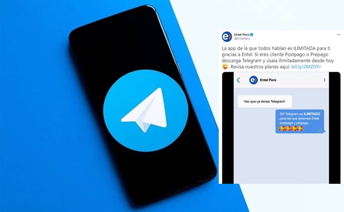 La app de la que todos hablan es ILIMITADA para ti gracias a Entel. Si eres cliente Postpago o Prepago descarga Telegram y úsala ilimitadamente desde hoy ?. Revisa nuestros planes aquí: https://t.co/kYdgvQChgO pic.twitter.com/UmfNxTWh7D
