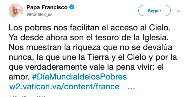 — Papa Francisco (@Pontifex_es) 17 de noviembre de 2019