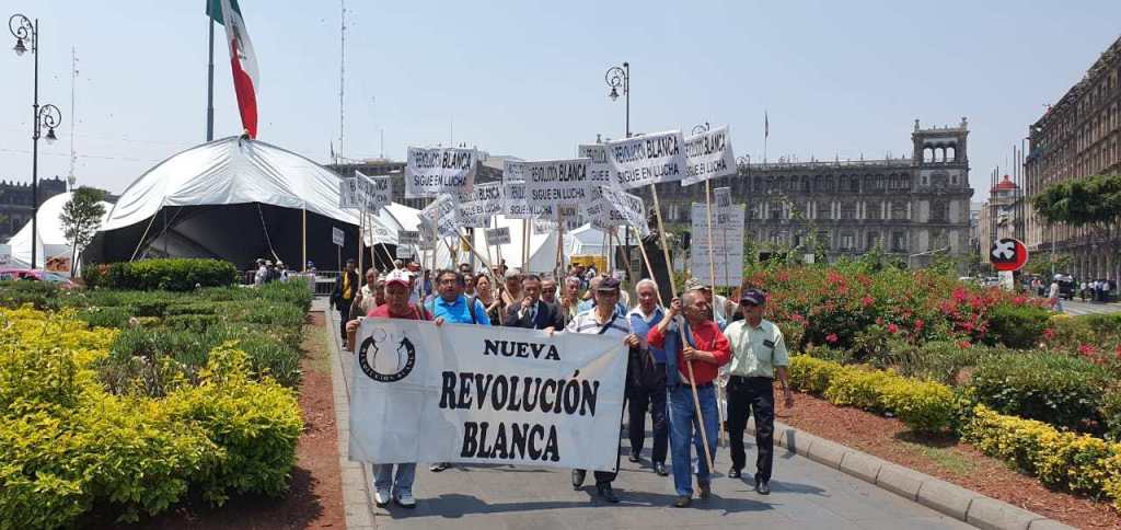 Integrantes de la “Revolución Blanca”, encabezados por su dirigente Emilio Serrano Jiménez, se manifestaron esta mañana frente a las oficinas del Congreso de la CDMX, para exigir se les explique el por qué desde enero se les suspendió el pago de la pensión alimentaria del gobierno del Distrito Federal que, afirman, por ley les corresponde.