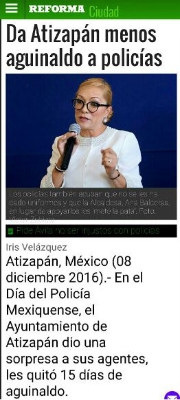 ” Hola buenas tardes, antes que nada una disculpa, se que tal vez no lo publiqués y lo entiendo , pero es algo que está pasando en este momento con los servidores públicos en el municipio. Y las pruebas preguntale a cualquier policía de Atizapan de cuanto le llegó su aguinaldo”(SIC)