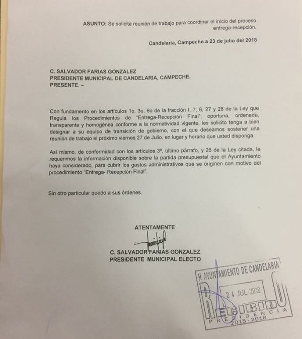 El alcalde reelecto de Candelaria se mandó un oficio para solicitar una reunión de trabajo consigo mismo: pic.twitter.com/ZoNEsVHtFa— Eduardo Huchín Sosa (@eduardohuchin) 1 de agosto de 2018