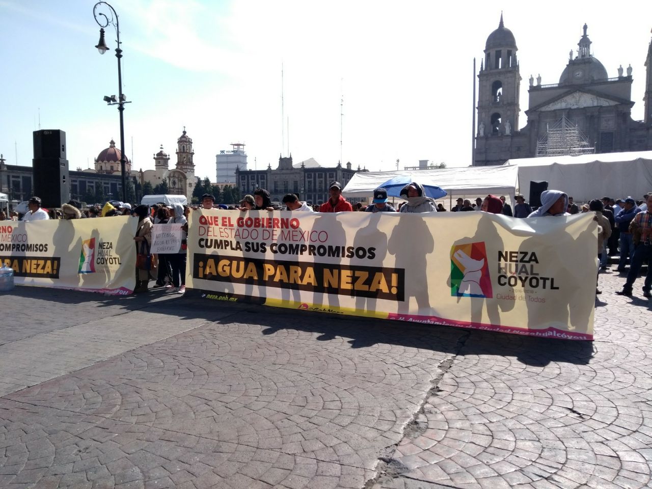 Esta mañana miles de vecinos de Nezahualcóyotl llegaron a la ciudad de Toluca para instalar un plantón indefinido frente al Palacio de Gobierno encabezados por su presidente municipal Juan Hugo de la Rosa García, quien informó se recurrió a la movilización para exigir al gobierno estatal resuelva de manera inmediata el problema de desabasto de agua en su municipio, toda vez que la Comisión Estatal del Agua (CAEM) no ha tomado acciones concretas que atiendan el problema y más allá de ello permite que particulares administren y comercialicen el preciado elemento proveniente de un pozo ubicado en los límites de la localidad, mientras que cerca de 300 mil habitantes sufren la falta del vital líquido.