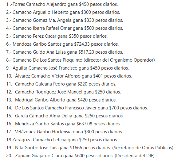 Otro de los puestos clave de la administración municipal, es el Organismo Operador del Agua, en donde su tío Pioquinto Camacho de Los Santos, es el director.