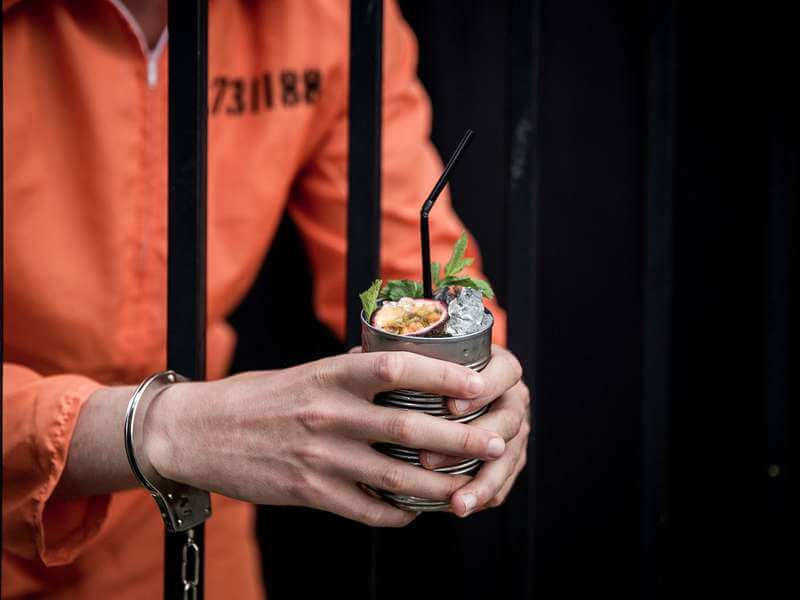 Una vez tras las rejas, “no encontrarás un menú fijo de bebidas aquí…después de todo, ¡es prisión!” En vez, el bar ofrece “una variedad de cócteles a medida cada noche basado en el alcohol que lleves y tus gustos” servido en recipientes discretos, por supuesto, para que no te “descubra el director”.