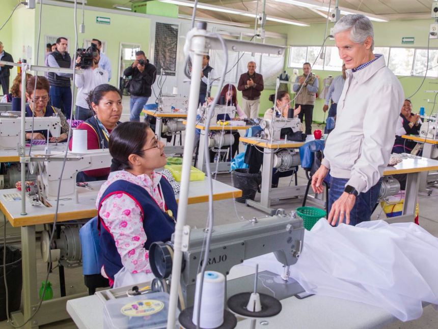 Durante su visita, acompañado del Secretario del Trabajo, el mandatario estatal recorrió el taller de corte y confección, donde tuvo la oportunidad de ver el trabajo de los alumnos en la realización de prendas de vestir.