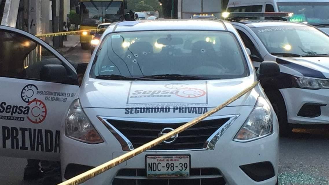 Dos elementos de seguridad privada fueron baleados mientras custodiaban un camión de mercancía sobre Periférico Norte, a la altura del centro comercial Mundo E.