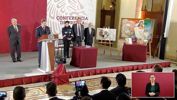 En Palacio Nacional, acompañado por el secretario de Educación, Esteban Moctezuma, el presidente López Obrador canceló una estampilla postal con la imagen del Caudillo del Sur, Emiliano Zapata.