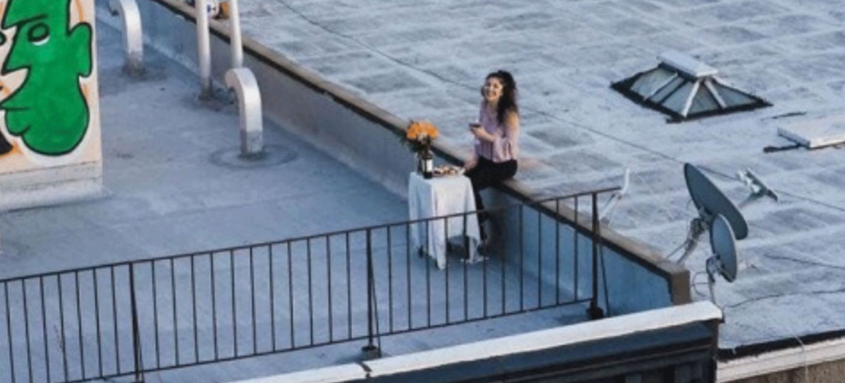 Jeremy lo logró, comenzó una charla con la joven bailarina de la azotea y tuvieron una cita, sí, una cena romántica a distancia, él en su departamento y ella en su azotea, desde ahí, un poco a la distancia, la vista es perfecta para su velada.