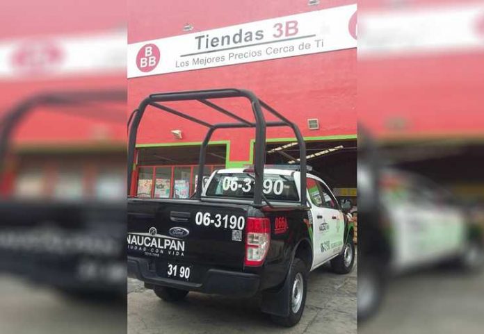 Dos sujetos armados, entraron a la Tienda 3B, ubicada en Bajada de Los Niños en Ampliación los Remedios, Naucalpan.