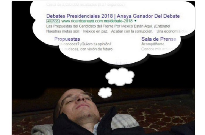 Ayer se dio a conocer que si en el buscador de Google se escribía “ganador debate 2018”, el primer resultado que daba era “Debates Presidenciales 2018/Anaya Ganador del Debate”, que a su vez tiene un link que dirigía al usuario a la página oficial del frentista.