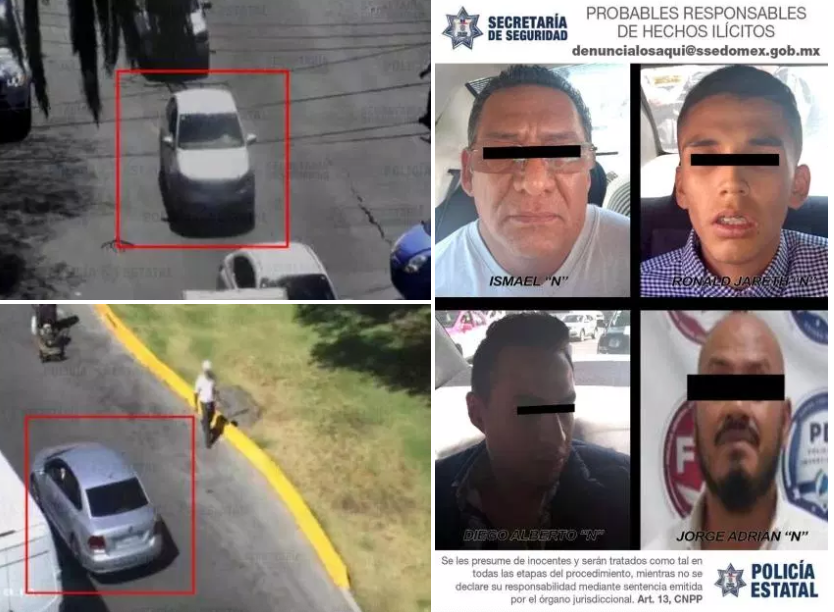 Derivado del cerco virtual que fue desplegado, se le dio seguimiento con la cámaras del Centro de Control, Comando, Comunicación, Cómputo y Calidad (C5) Valle de Toluca y se aprehendió a quienes dijeron llamarse Ronald Jareth “N”, de 18 años de edad; Ismael “N”, de 53 años; Diego Alberto “N”, de 28 y Jorge Adrián “N”, de 39 años, cuando circulaban por la calle Camino Arenoso y Av. Gustavo Baz, colonia Ricardo Flores Magón.