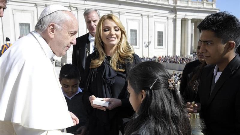 Durante el saludo, Angélica Rivera dijo al papa Francisco “nuestros niños y sus padres vienen a saludarlo y a dar su testimonio de la fuerza que usted les ha dado siempre, para salir adelante. Cada uno de ellos ha mejorado mucho con su tratamiento médico y hoy están aquí para agradecer el haber pintado a México de Luz”.