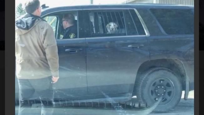 Un perro en Canadá fue arrestado por la policía luego de perseguir a un ciervo por la carretera; su fotografía en el coche patrulla se hace viral.