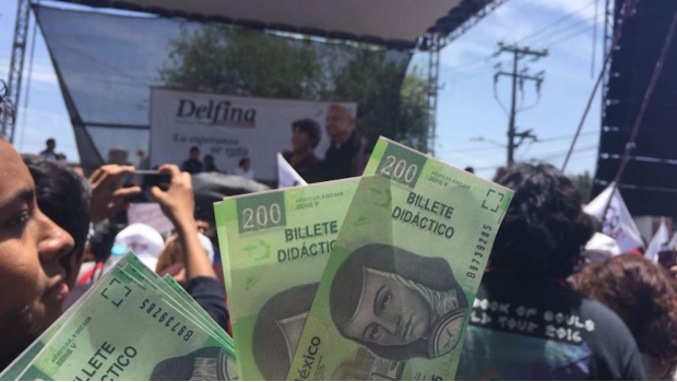 Durante un acto de campaña de la abanderada de Morena al gobierno del Estado de México, Delfina Gómez Álvarez, en compañía del líder del partido, Andrés Manuel López Obrador celebrado en el municipio de Ixtapaluca, un grupo de asistentes arrojó billetes falsos a la candidata y el político tabasqueño.