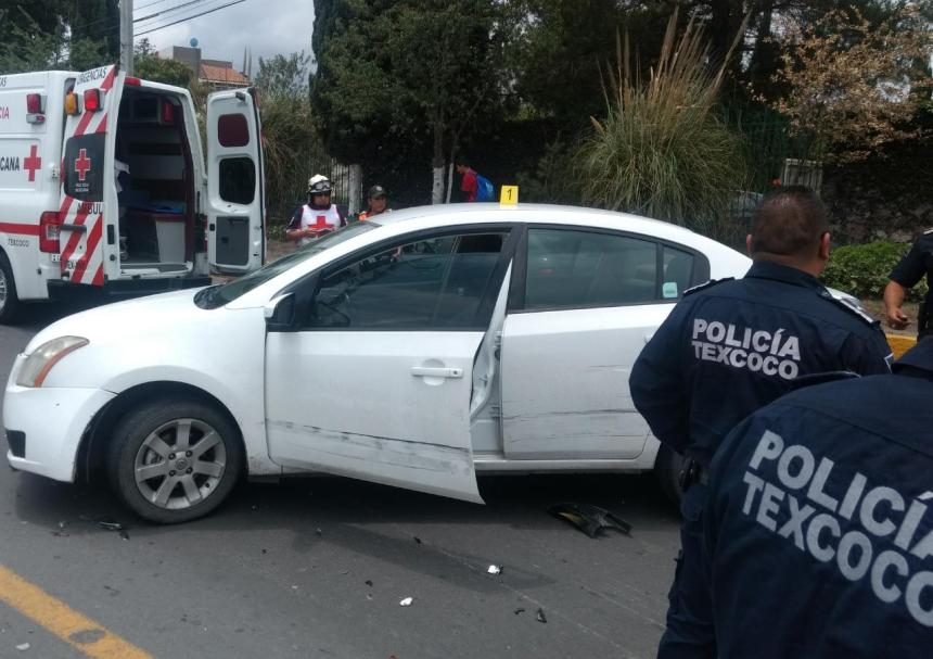 Enseguida se alertó a los elementos policiacos iniciando una persecución hasta la avenida Hidalgo, y el cruce con la carretera al Molino de Flores, en donde los sujetos que viajaban en un automóvil Nissan de color blanco, placas MWJ 22 18 del Estado de México, impacto con la parte delantera derecha una motocicleta, quedando lesionado el conductor.