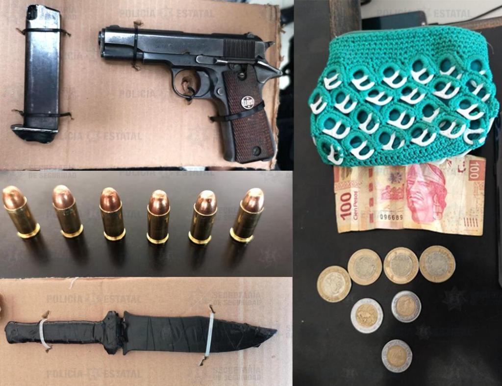 Metros más adelante, al ser detenidos, se les aseguró una pistola tipo escuadra marca Llama tipo Gabilondo y Cía, calibre 32 milímetros, con 6 cartuchos útiles y un cuchillo color negro.