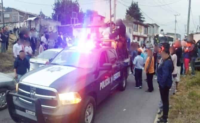 En el sitio, alrededor de 300 personas golpeaban a un par de hombres y los policías mexiquenses intervinieron de inmediato a fin de salvaguardar la integridad de ambos implicados.