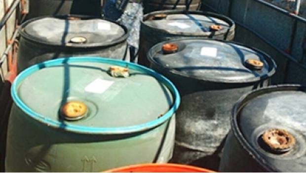 Al llegar al lugar indicado, los policías estatales aseguraron una camioneta Dodge, tipo Ram 400, con seis contenedores de mil litros llenos en su totalidad de líquido con características propias de hidrocarburo.