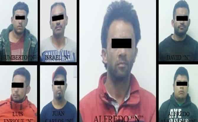 En el lugar fue posible la aprehensión de los probables responsables identificados como Luis Enrique “N”, de 23 años; David “N”, de 32 años; Juan Carlos “N”, 26 de años; Israel “N”, de 38 años; Alfredo “N”, de 43 años; Humberto “N”, de 26 años, y Alfredo Alejandro “N”, de 25 años de edad.