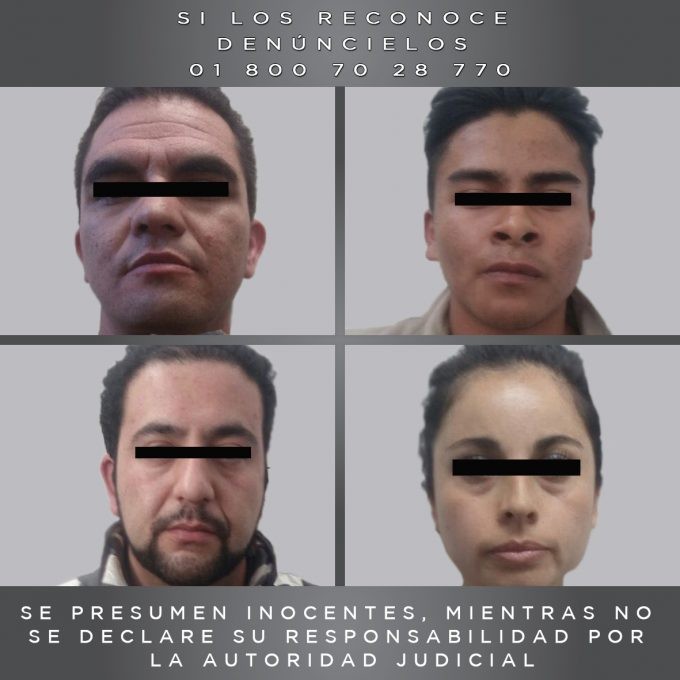Los probables delincuentes son Carlos Efraín “N”, Carlos Antonio “N”, Osly Jair “N”, Alejandra “N”, así como un menor de 14 años, quienes enfrentan cargos por estos hechos, ya que presuntamente dos de ellos, se ostentaron como elementos de una corporación policiaca federal; ingresaron a un plantel escolar de Tenancingo y pretendieron llevarse consigo a un adolescente de 12 años de edad.