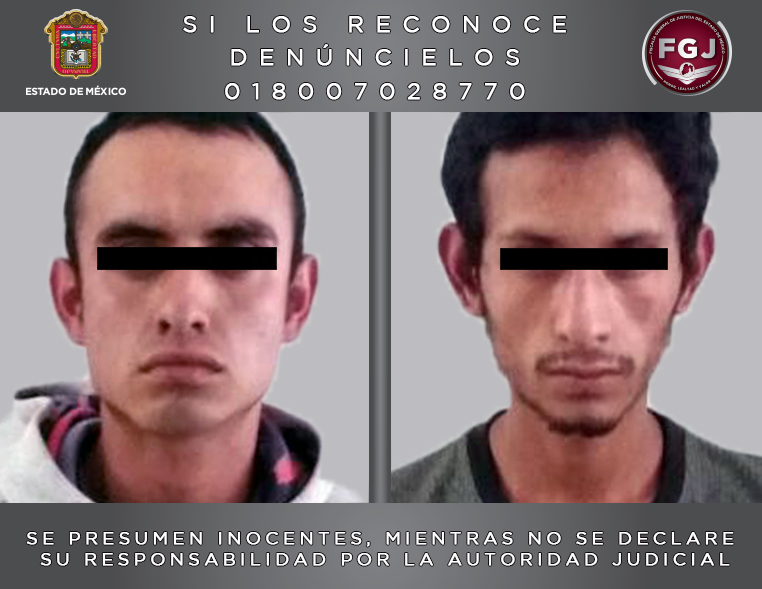 Agentes de Investigación de la Fiscalía General de Justicia del Estado de México (FGJEM) llevaron a cabo la detención de dos sujetos, quienes están señalados por su probable participación en el delito de robo con violencia.