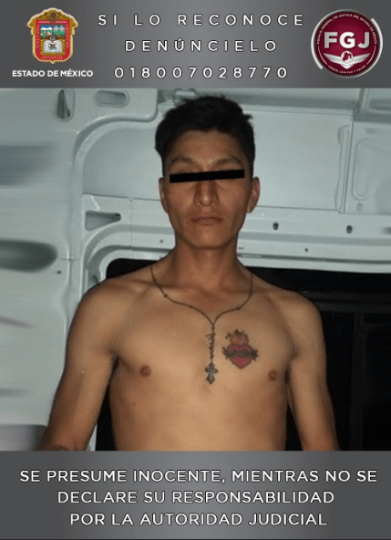 La detención de este sujeto fue hecha en calles del municipio de Chimalhuacán, en cumplimiento de una orden de aprehensión que existía en su contra por el delito de homicidio calificado según la causa penal 588/2016. De acuerdo con la investigación realizada por personal de esta Institución se pudo establecer que este individuo sería integrante de un grupo delictivo autodenominado “Loca Familia Michoacana”, mismo que habría perpetrado homicidios, extorsiones y robos a unidades de transporte público en los municipios de Nezahualcóyotl y Chimalhuacán.