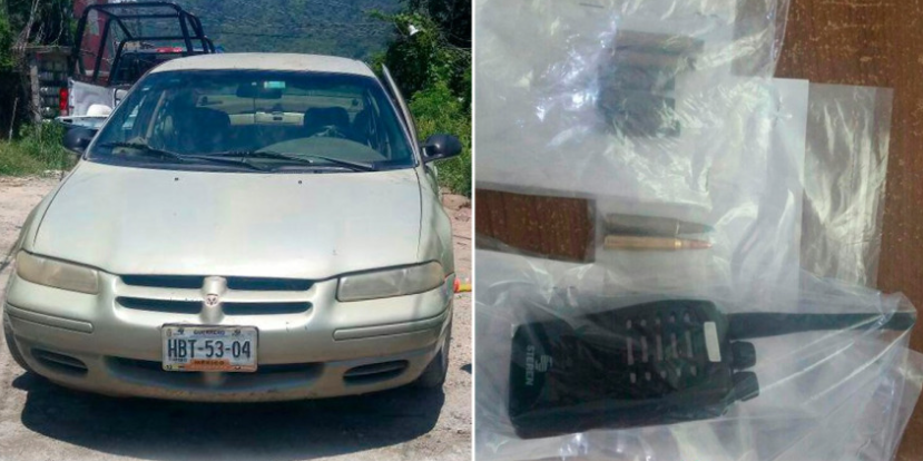 Luego de realizar una revisión al interior del vehículo abandonado, fueron encontrados un equipo de radiocomunicación y 2 cartuchos útiles calibre .223, los cuales fueron asegurados y puestos a disposición de las autoridades competentes.
