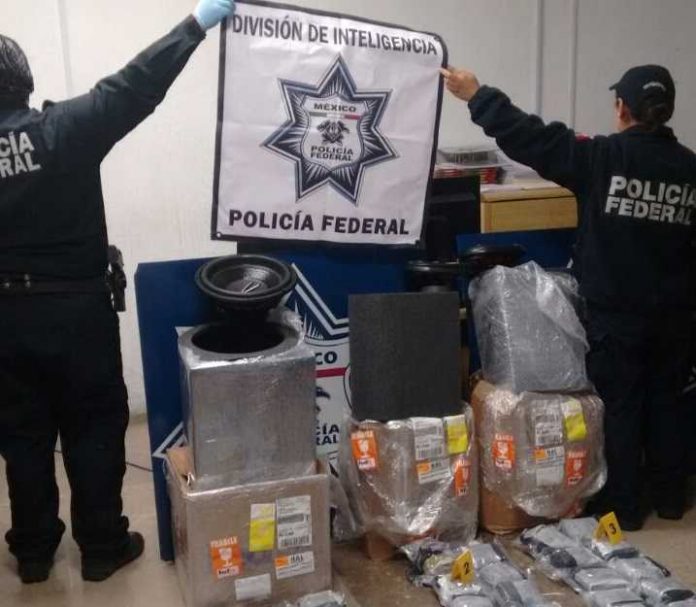 De este modo, personal de la Policía Federal localizó dentro de las bocinas, 47 envoltorios que en su interior contenían un vegetal color verde, al parecer marihuana, con un peso total de seis kilos y medio.