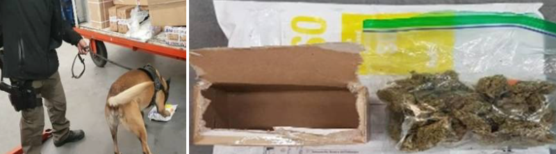 Elementos de la Policía Federal Ministerial mediante una revisión que se les realiza a las empresas de paquetería, aseguraron 30 gramos de marihuana en el aeropuerto Internacional de la ciudad de Toluca ubicado en la avenida Miguel Alemán, sin número.