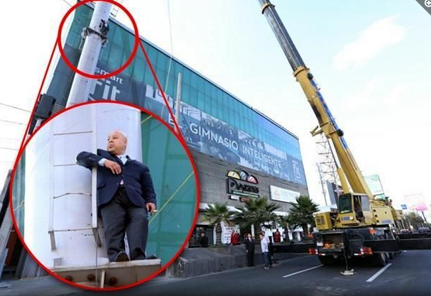 Sin embargo, al menos cuatro personas impidieron que el anuncio fuera desmontado, una de ellas incluso se montó a la escalinata de ascenso.