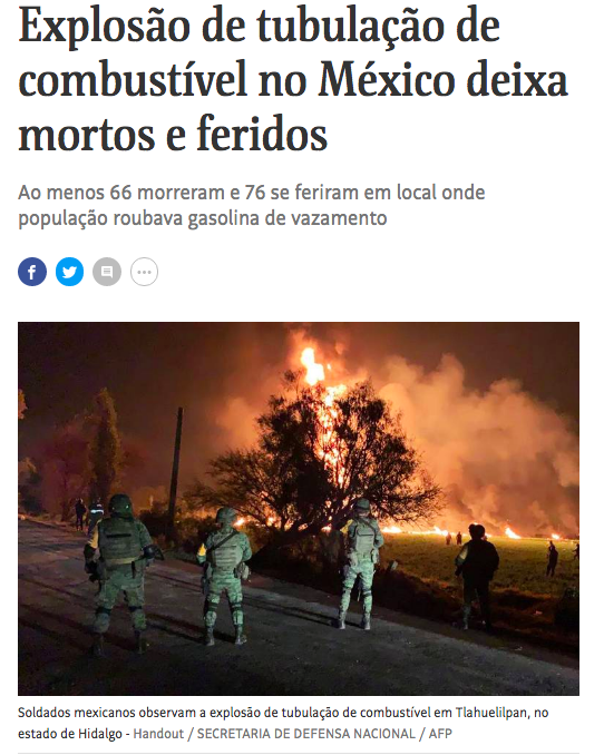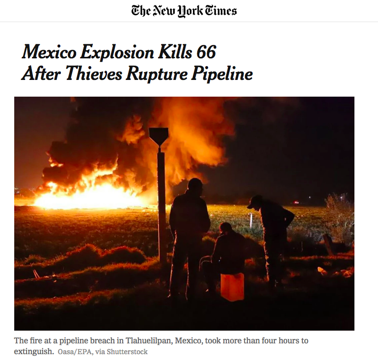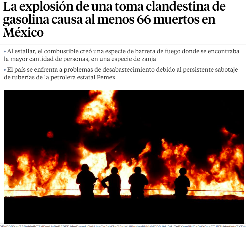 Si había medios internacionales que no se habían hecho eco de la crisis de desabasto de combustible en México, la noche del viernes y madrugada del sábado tuvieron que revisar hemerotecas para entender qué había provocado la explosión en Tlahuelilpan, Hidalgo.