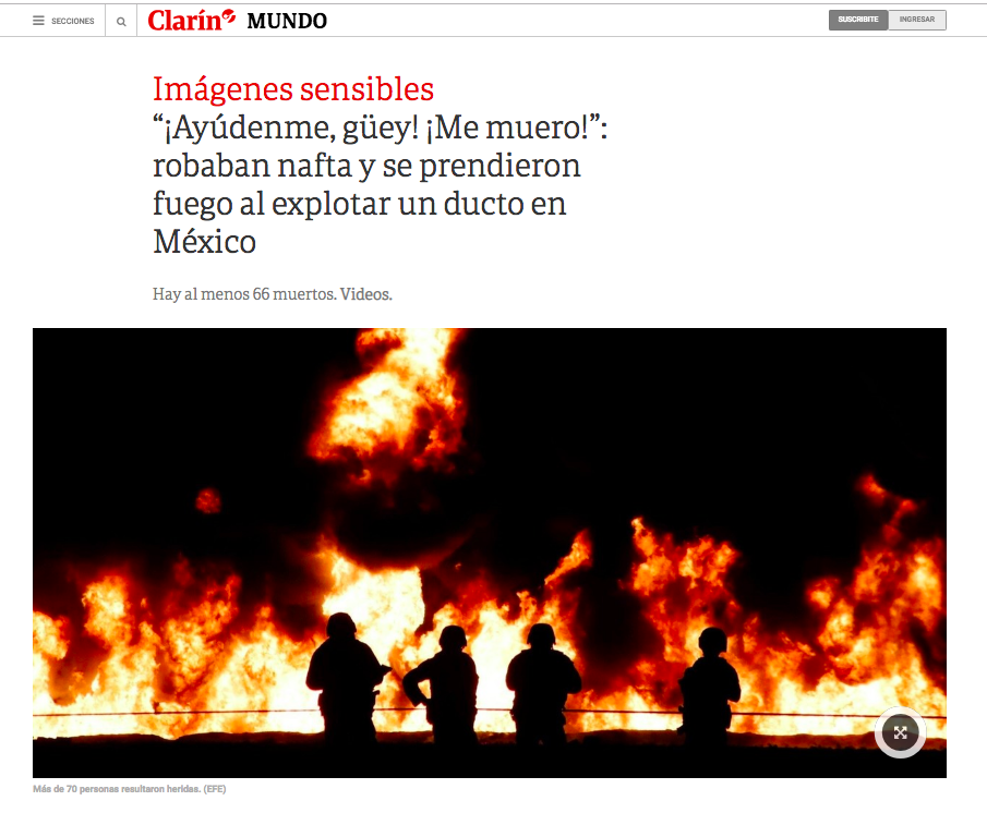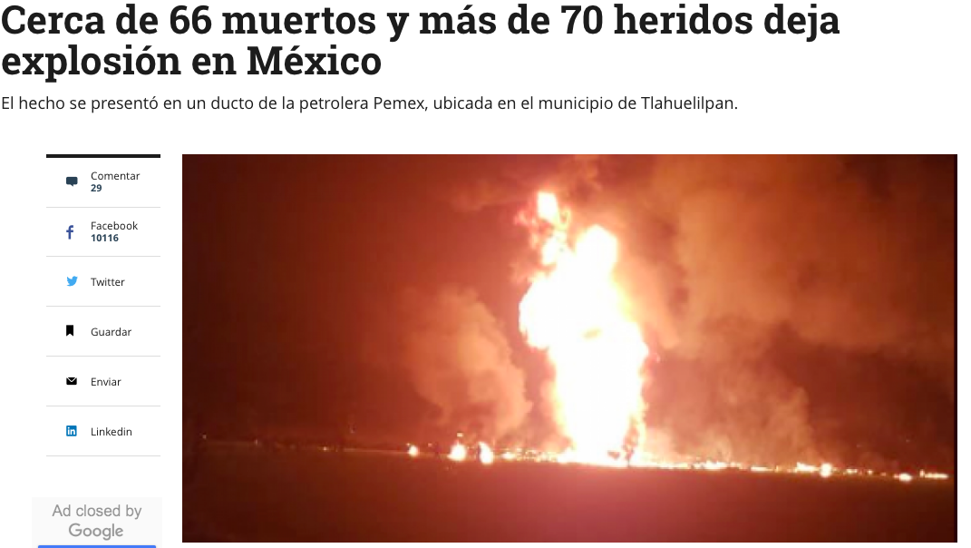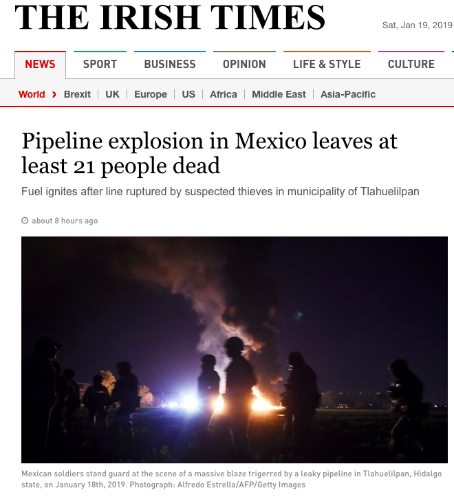 “La explosión es una de las peores de la historia reciente del país, que ha sufrido cientos de rupturas ilegales en su red de ductos de gasolina y gas”, explica el irlandés.