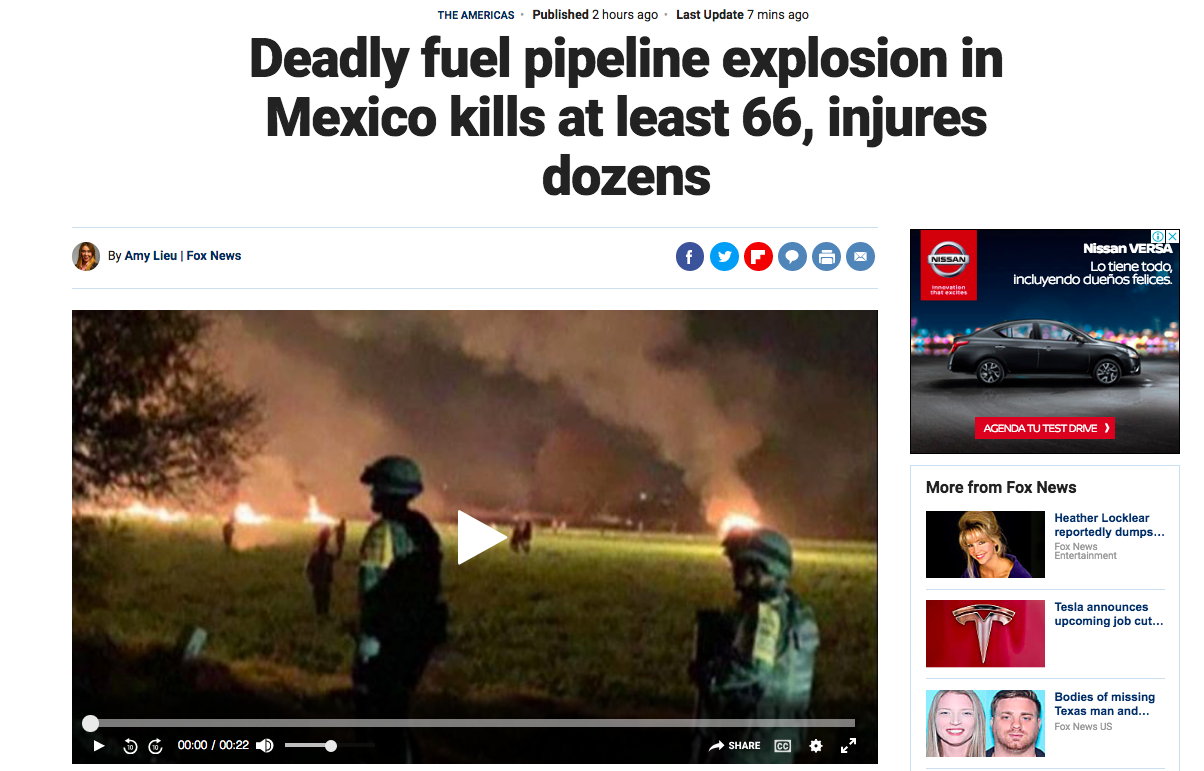 “Explosión de oleoducto mortífera en México mata al menos a 66, deja docenas de heridos”