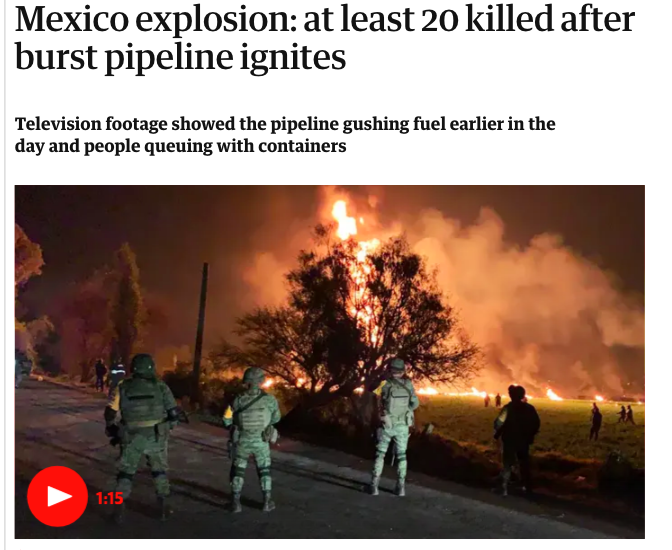 “Explosión en México: al menos 20 muertos luego de que un oleoducto se prenda en llamas por una explosión”
